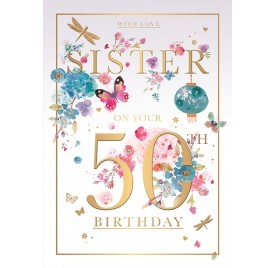 50th - Sister on your Birthday - Watercolour - Dragonflies
