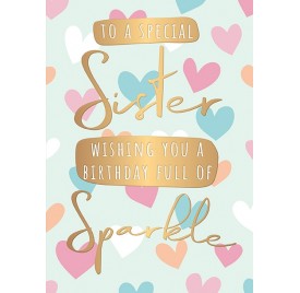 Sister - Birthday Full of Sparkle - Softly Coloured Hearts
