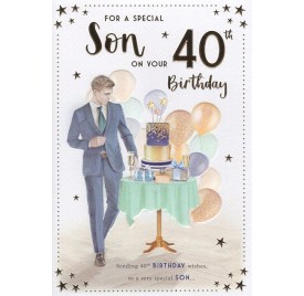 Son - 40th Birthday - Man with Birthday Cake & Gift Table