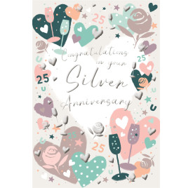 Silver Wedding Anniversary - 25 Years - Flutes - Roses
