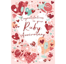 Ruby Wedding Anniversary - 40 Years - Red Hearts - Flutes - Love