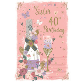 Sister 40th Birthday - Flute Glass - Bottle of Drink - Pastel