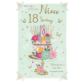 Niece 18th Today Birthday Card - Cake Stand - Pastel Candles