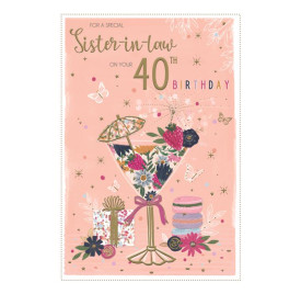 Sister-in-law 40th Birthday Card - Cocktail Glass - Macaroons - Brolly