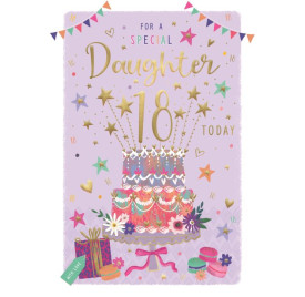 Daughter - 18 Today Birthday Card - Cake and Present- Macaroon