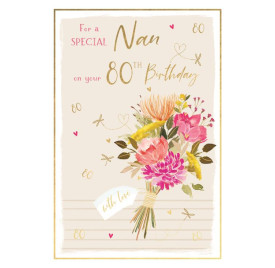 Nan 80th Birthday Card - Bouquet of Flowers - With Love