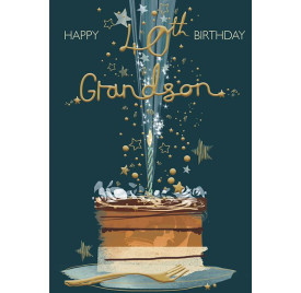 40th Grandson Birthday Card - Chocolate Cake - Gold Fork