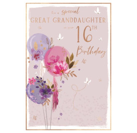 Great Granddaughter 16th Birthday Card - Pastel Balloons - Flowers