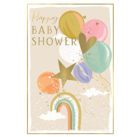 Baby Shower Card - Unisex - Pastel Balloons - Rainbow
