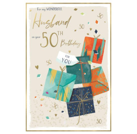 Husband 50th Birthday - Bold Marble Present Paper - Gift Stack