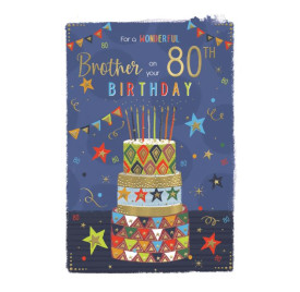 Brother 80th Birthday - Triple Layer Cake - Gold Foil - Navy