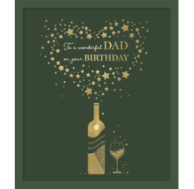 Dad Birthday - Gold Heart of Stars - Wine Bottle & Glass - Green