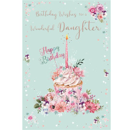 Daughter Birthday - Cupcake with Candle - Topper - Floral