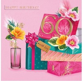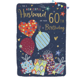 Husband 60th Birthday Card - Bold Colour Balloons - Sixty
