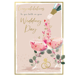 Wedding Day Card - Champagne - Love Hearts - Rings