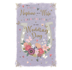 Wedding Card - Nephew and Wife - Silver Horseshoe - Flowers