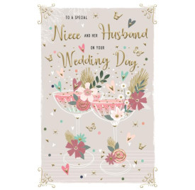 Wedding Card Niece and her Husband - Champagne Glasses - Flowers