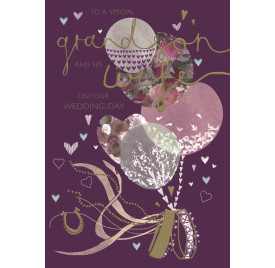 Grandson and Wife Wedding Card - Confetti Balloons - Wedding Rings