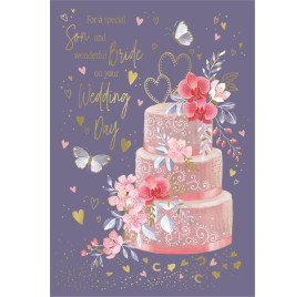 Wedding Day - Son and wonderful Bride - Triple layer Pink Icing Cake