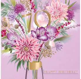 70th - Happy 70th Birthday - Vase of Flowers - square