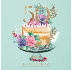 50th - Celebration - Flower Cake on Stand - Happy Birthday