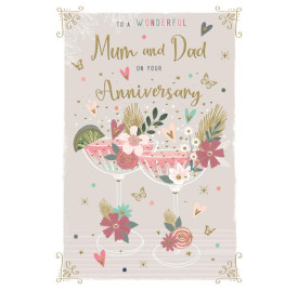 Mum and Dad Anniversary Card - Champagne Glasses - Cocktails