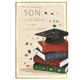 Son Graduation - Congratulations - Graduation Cap and Exam Books