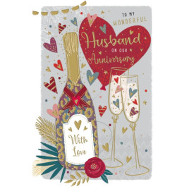 Husband Anniversary - Flute Glasses - with Love - Gold Foiled