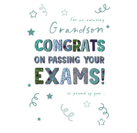Grandson Congratulations on passing your exams - Blue Lettering - Blue foiled