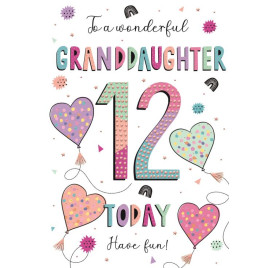Granddaughter 12th Birthday - Pastel Heart Balloons