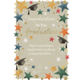 Graduation Open Card - Graduation Caps and Stars - Congratulations