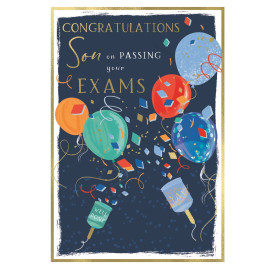 Congratulations Son - On passing your Exams - Party Poppers - Balloons