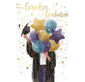 Grandson Graduation - Male Gown and Large Bunch of Balloons - Cap