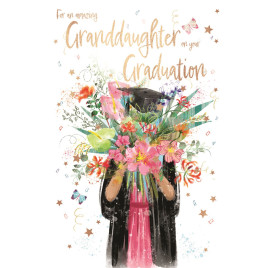 Granddaughter Graduation - Bouquet of Flowers - Graduation Caps and Gown