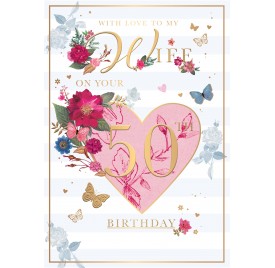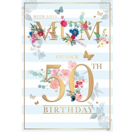 50 - Mum on your 50th Birthday - Gold with Flowers