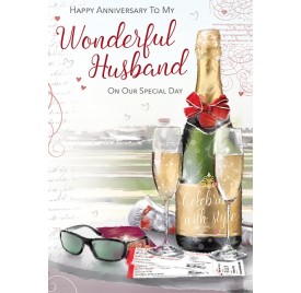 Anniversary - Husband Celebrate in Style - Bottle and Fizz Flutes