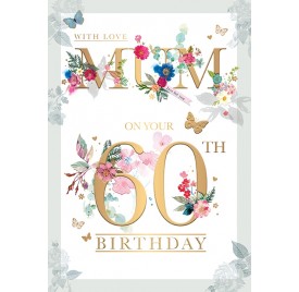 60th - Mum 60th Happy Birthday - Gold Foil & Flowers