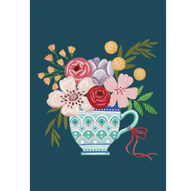 Notelets - floral - 6 pack - Teacup with flowers - Blank Message