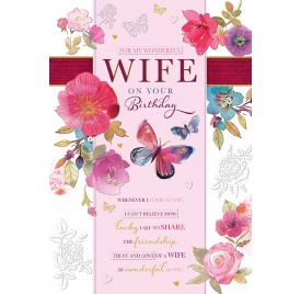 Wife - On Your Birthday - Embossed Flowers and Hearts