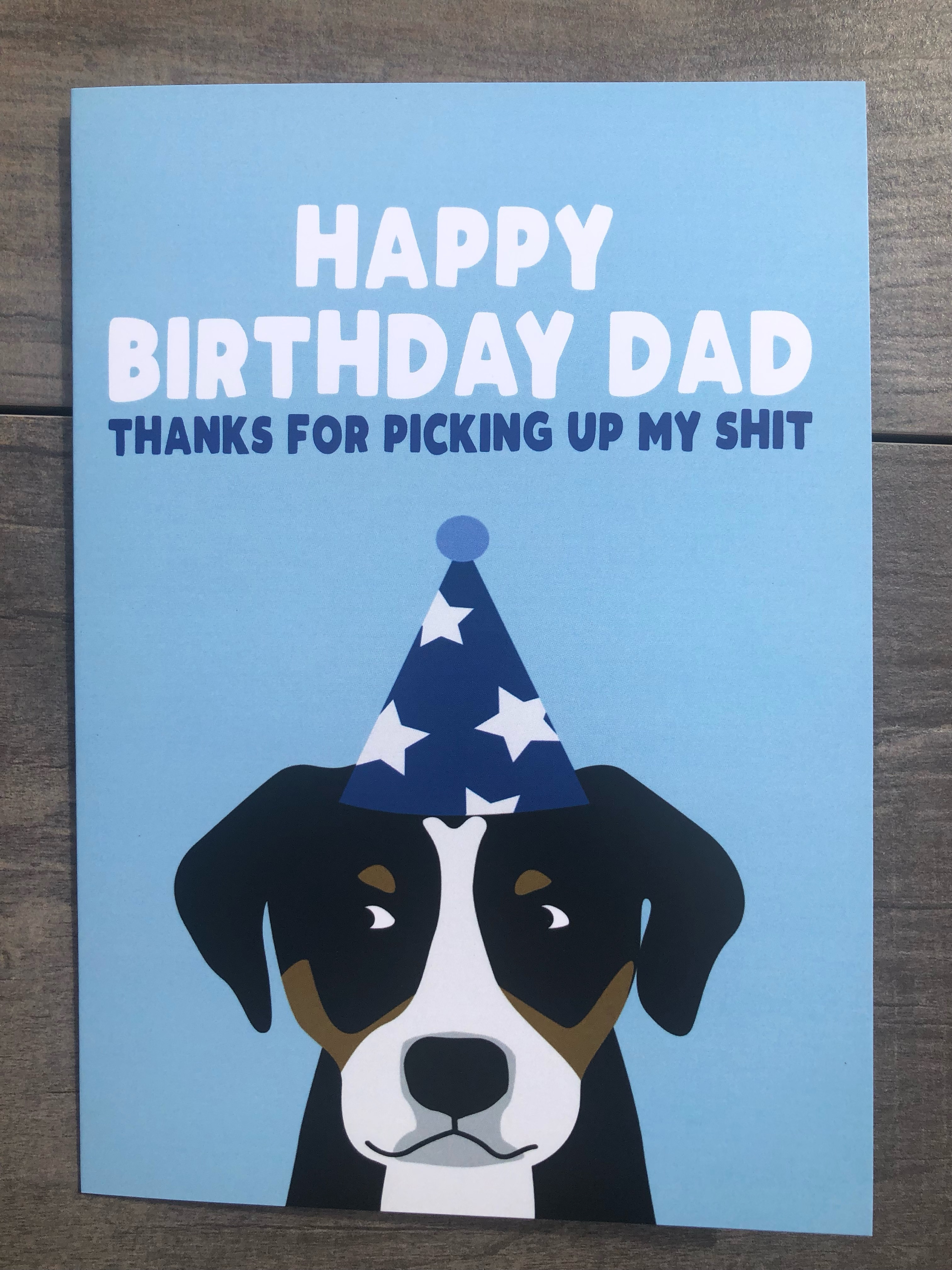 Verse reads: Front - Happy Birthday Dad Thanks for picking up my sh*t