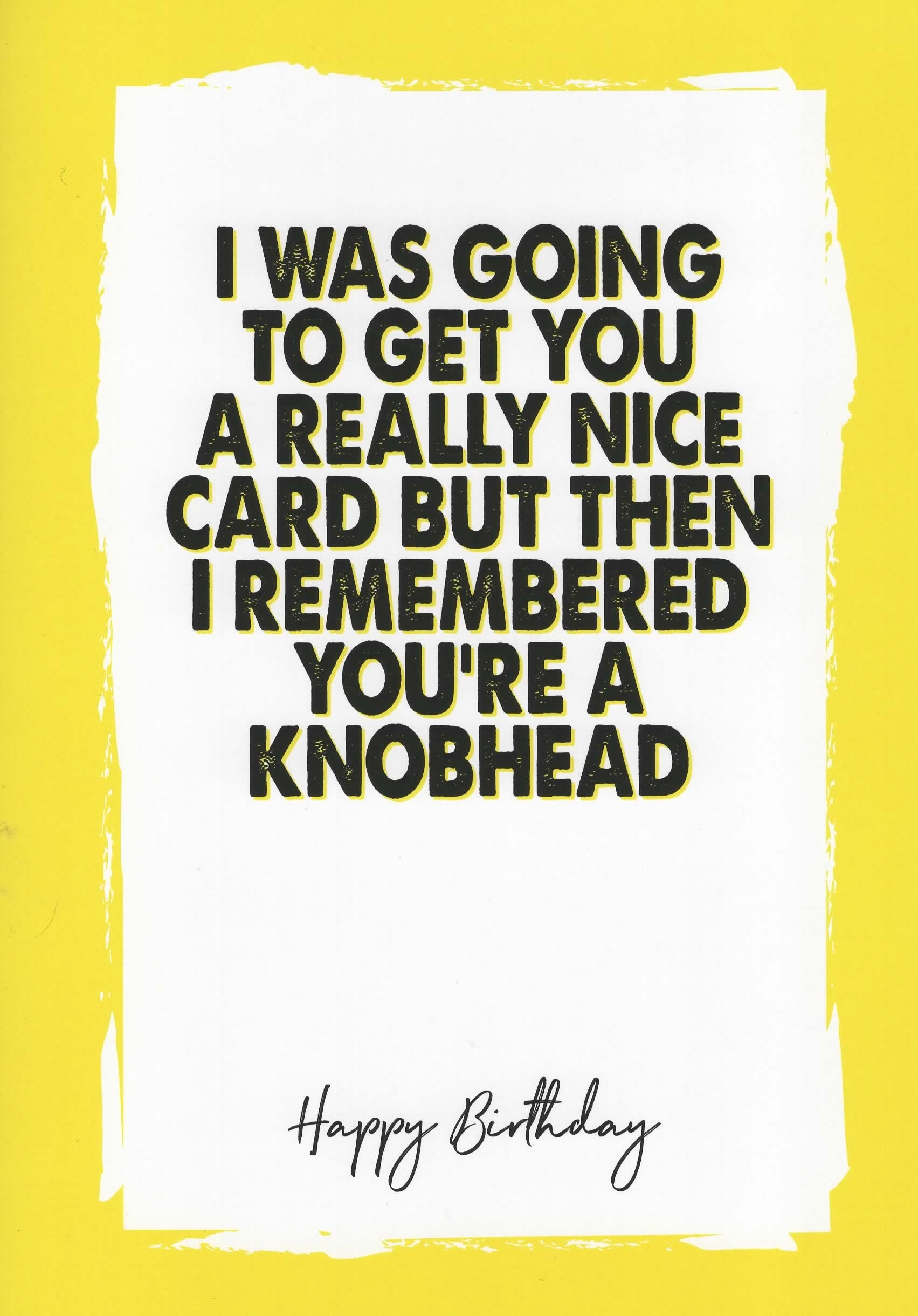 Verse reads: Front - I was going to get you a really nice card but then I remembered you're a kn*bhead Happy Birthday