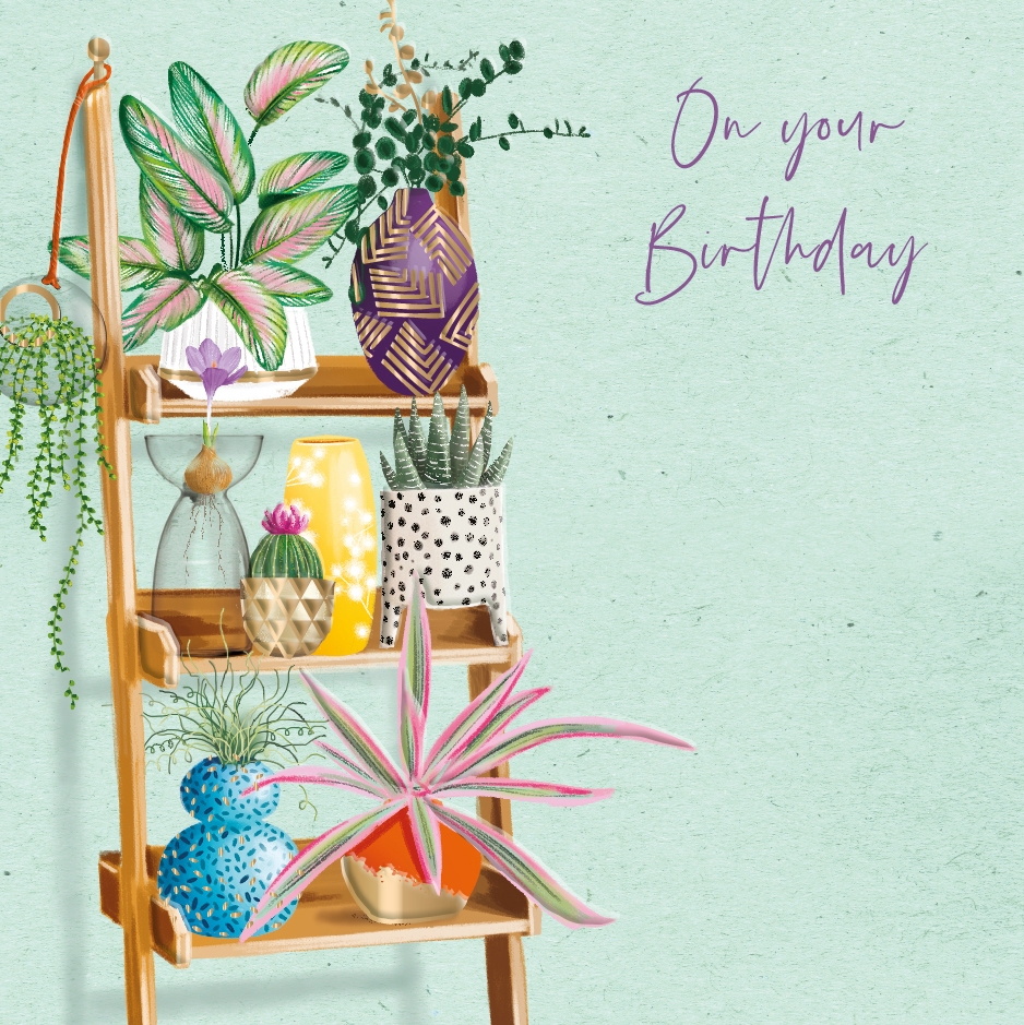 Open Female - Plants On Shelving Birthday Card