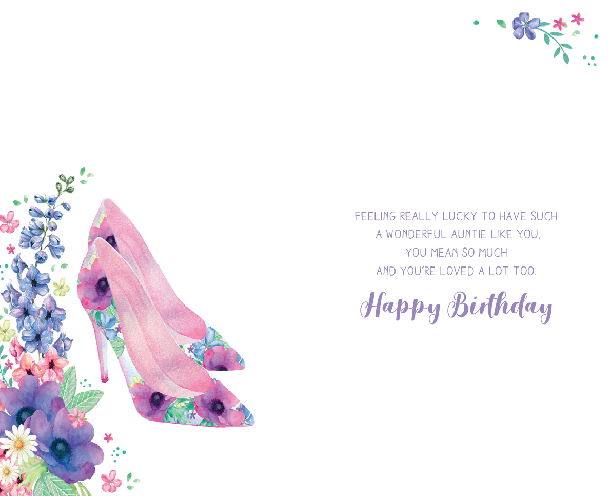 Verse reads: Feeling really lucky to have such a wonderful Auntie like you, You mean so much and you're loved a lot too. Happy Birthday