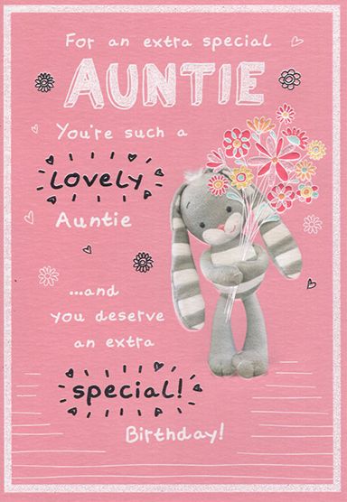 Verse reads: Front - You're such a lovely Auntie ...and you deserve an extra special birthday! Inside - Happy Birthday with lots of love