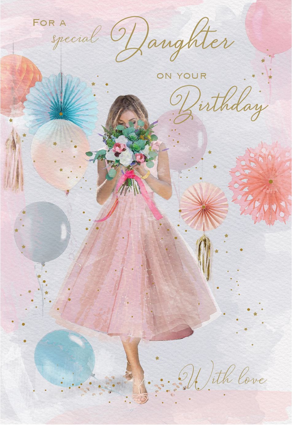 Verse reads: It seems the perfect time to say now that your Birthday's here, that you grow ever more wonderful with every passing year... ...You're a very special person we all know it to be true, But there is no other Daughter as fabulous as you. With love on your Birthday
