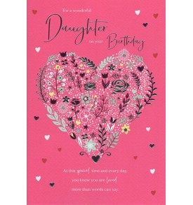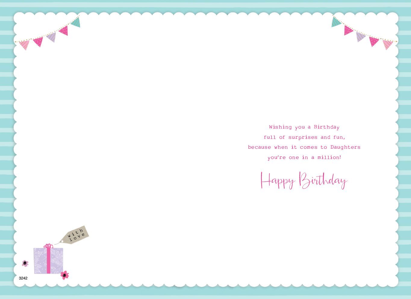 Verse reads: Wishing you a Birthday full of surprises and fun, because when it comes to Daughters you're one in a million! Happy Birthday