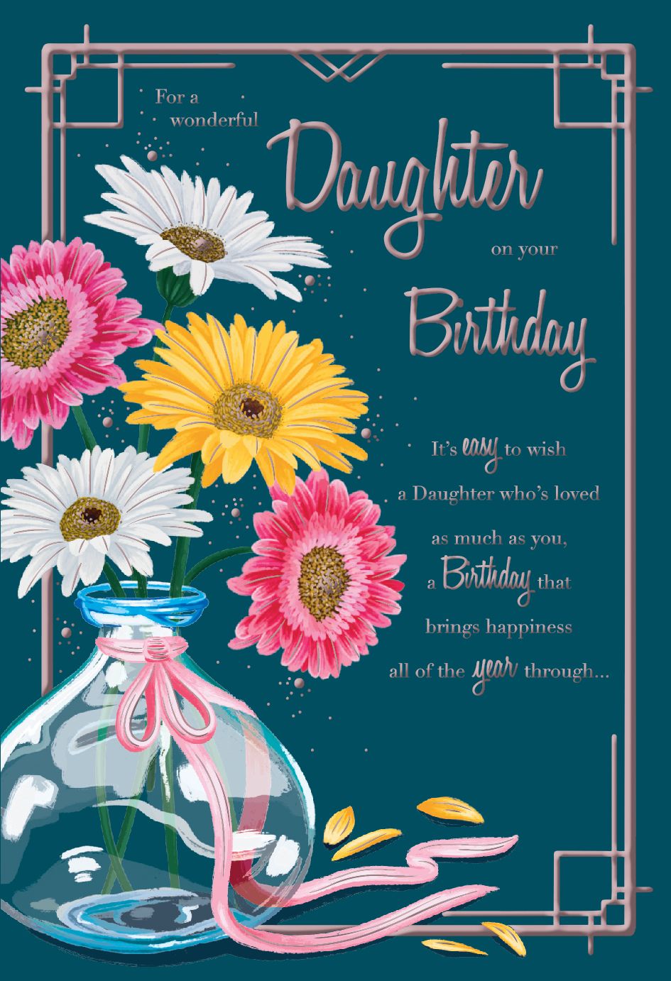 Verse reads: Front - It's easy to wish a Daughter who's loved as much as you, a Birthday that brings happiness all of the year through...