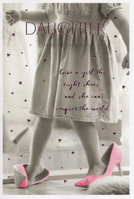 Verse reads: Front - Give a girl the right shoes and she can conquer the world Inside - You deserve the very best on your Birthday and always, may your life be filled with love, happiness and laughter. Happy birthday to a very special Daughter