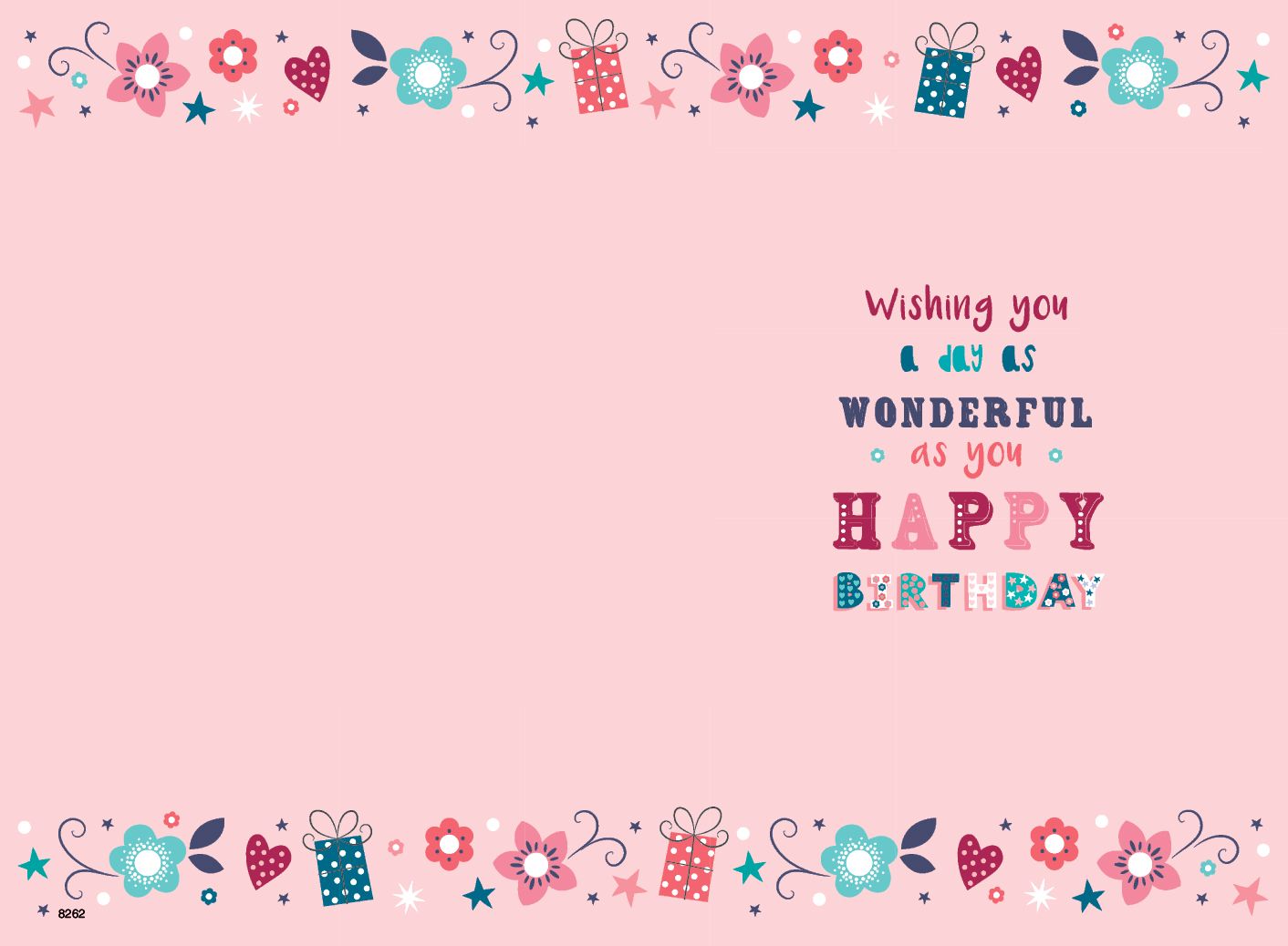 Verse reads: Wishing you a day as wonderful as you Happy Birthday