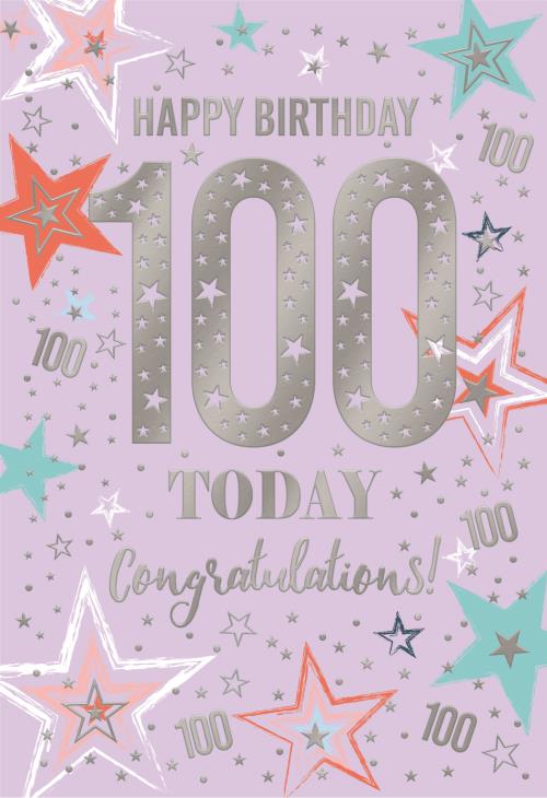 100th Birthday Today - Congratulations- Stars - Silver Numbers